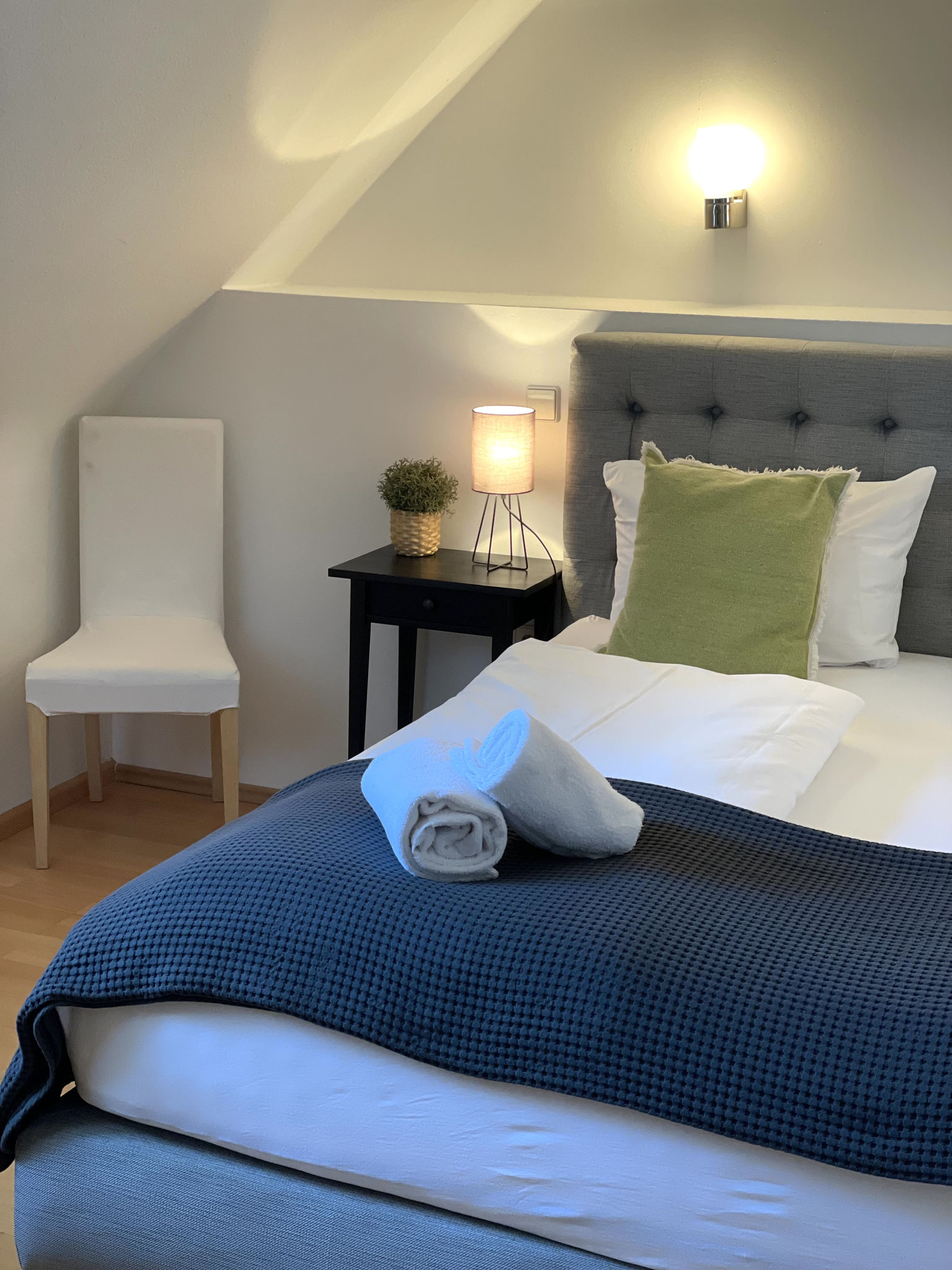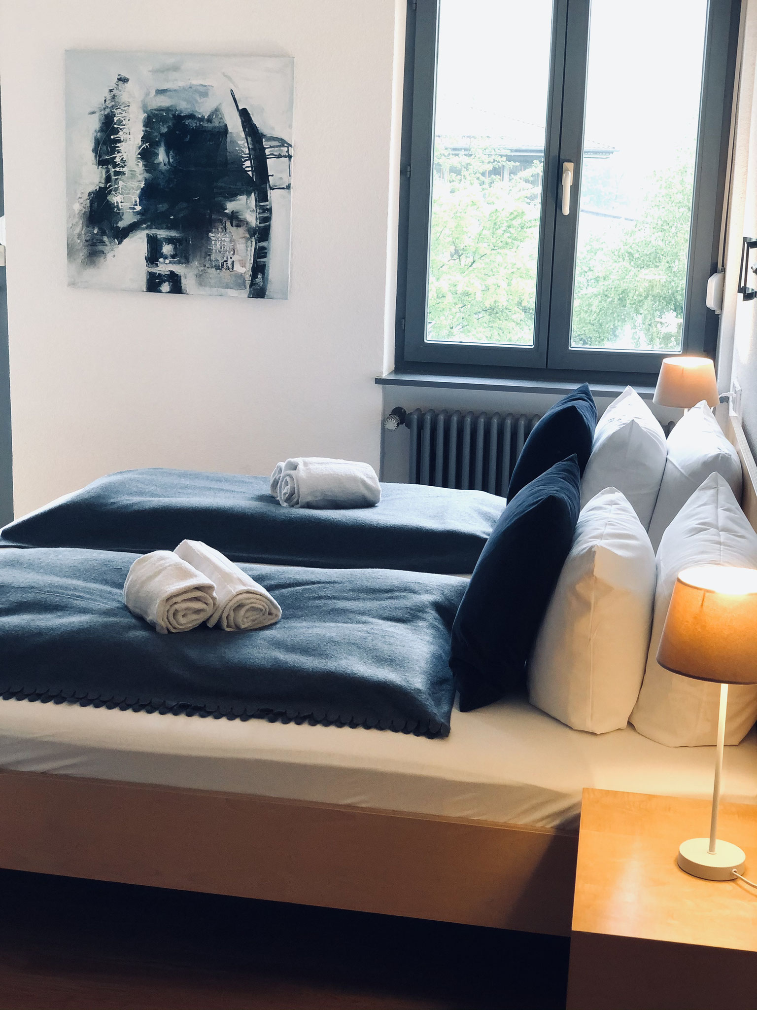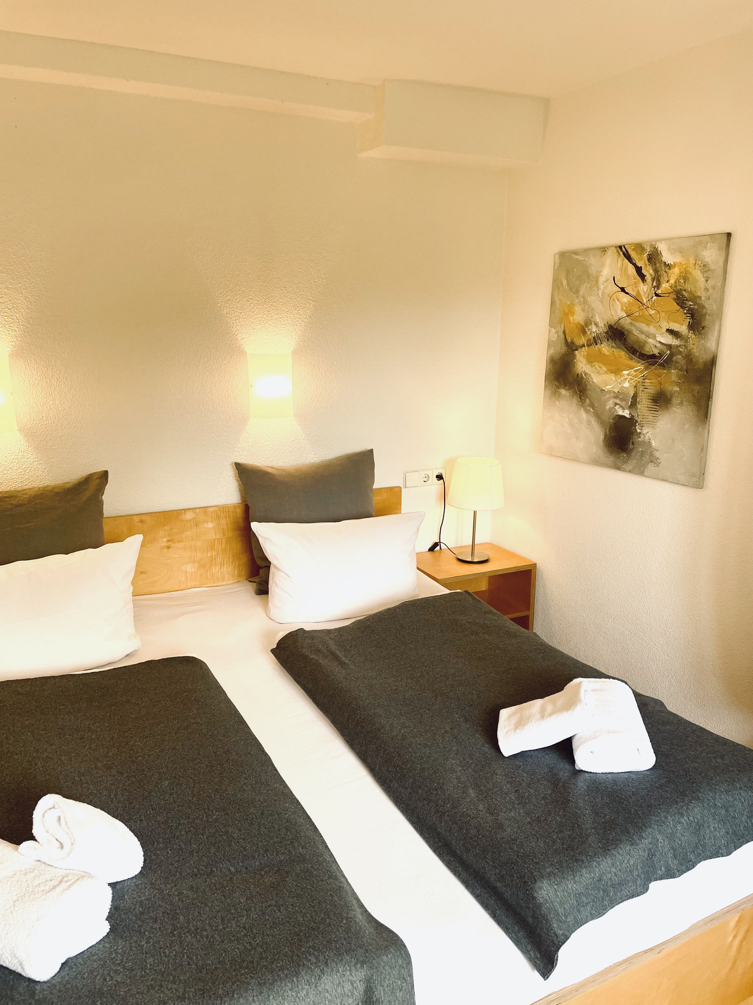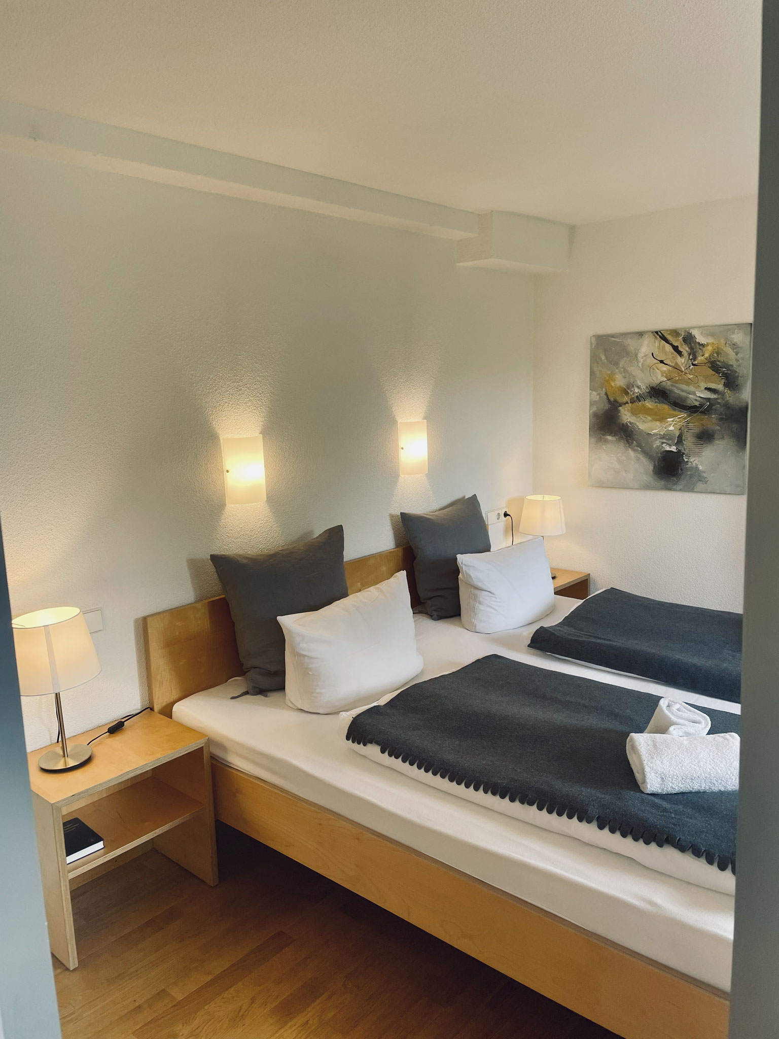 Alle Zimmer sind hell, ruhig und individuell eingerichtet – mit bequemen Betten, hochwertigen Matratzen (mal weich - mal fester), kostenfreiem WLAN und modernen Bädern. Ob Sie geschäftlich unterwegs sind, Freiburg entdecken oder einfach entspannen möchten – bei uns finden Sie Ruhe, Erholung und persönliche Atmosphäre. Unsere bewegungsgesteuerten Lichter (in den Fluren) sorgen für Komfort und Nachhaltigkeit zugleich, ganz ohne Lichtschalter – ein kleines Detail, das zeigt: Bei uns steckt in jedem Winkel durchdachte Einfachheit.