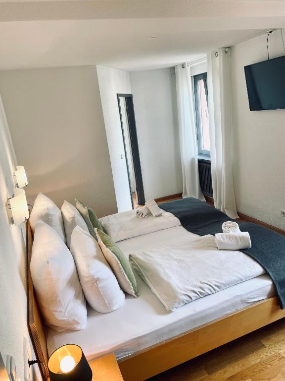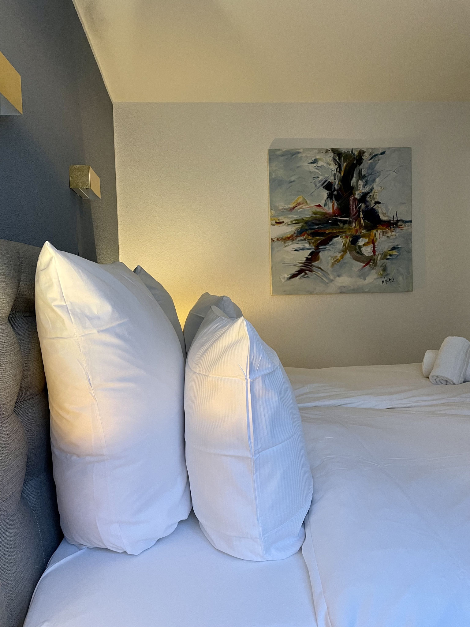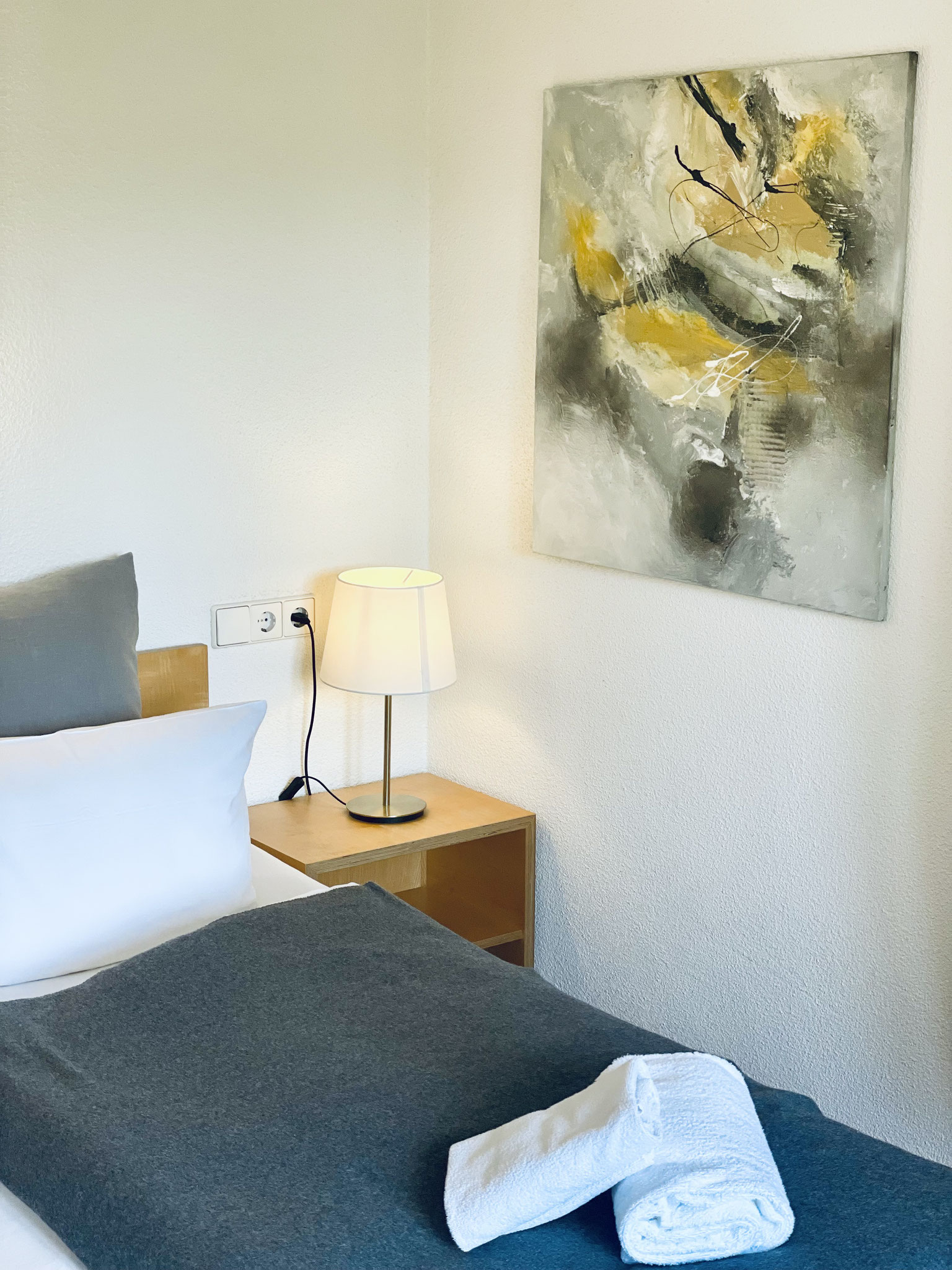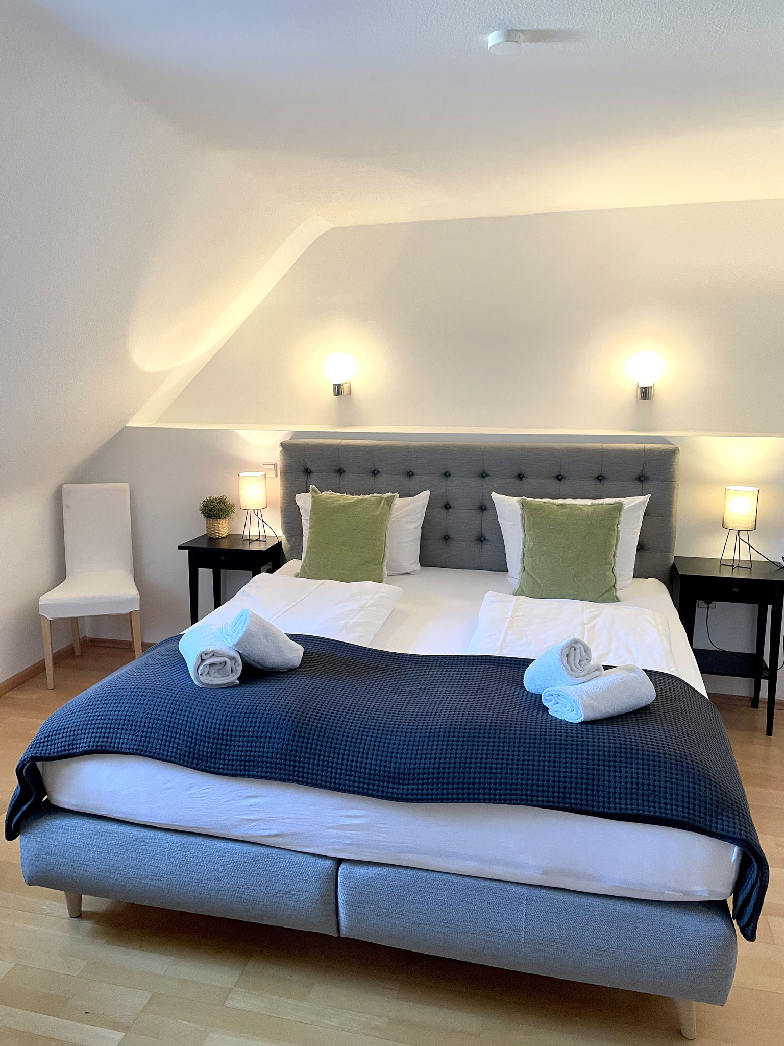 Alle Zimmer sind hell, ruhig und individuell eingerichtet – mit bequemen Betten, hochwertigen Matratzen (mal weich - mal fester), kostenfreiem WLAN und modernen Bädern. Ob Sie geschäftlich unterwegs sind, Freiburg entdecken oder einfach entspannen möchten – bei uns finden Sie Ruhe, Erholung und persönliche Atmosphäre. Unsere bewegungsgesteuerten Lichter (in den Fluren) sorgen für Komfort und Nachhaltigkeit zugleich, ganz ohne Lichtschalter – ein kleines Detail, das zeigt: Bei uns steckt in jedem Winkel durchdachte Einfachheit.