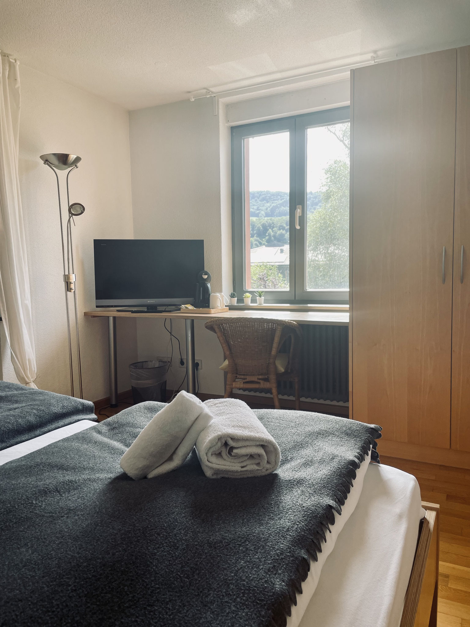 Das Zimmer liegt ruhig und überzeugt durch seine helle, freundliche Atmosphäre – ideal für eine Übernachtung in Merzhausen bei Freiburg, ob auf Geschäftsreise, zur Erholung oder als Zwischenstopp im schönen Breisgau.